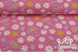 • Tricot happy flowers pink